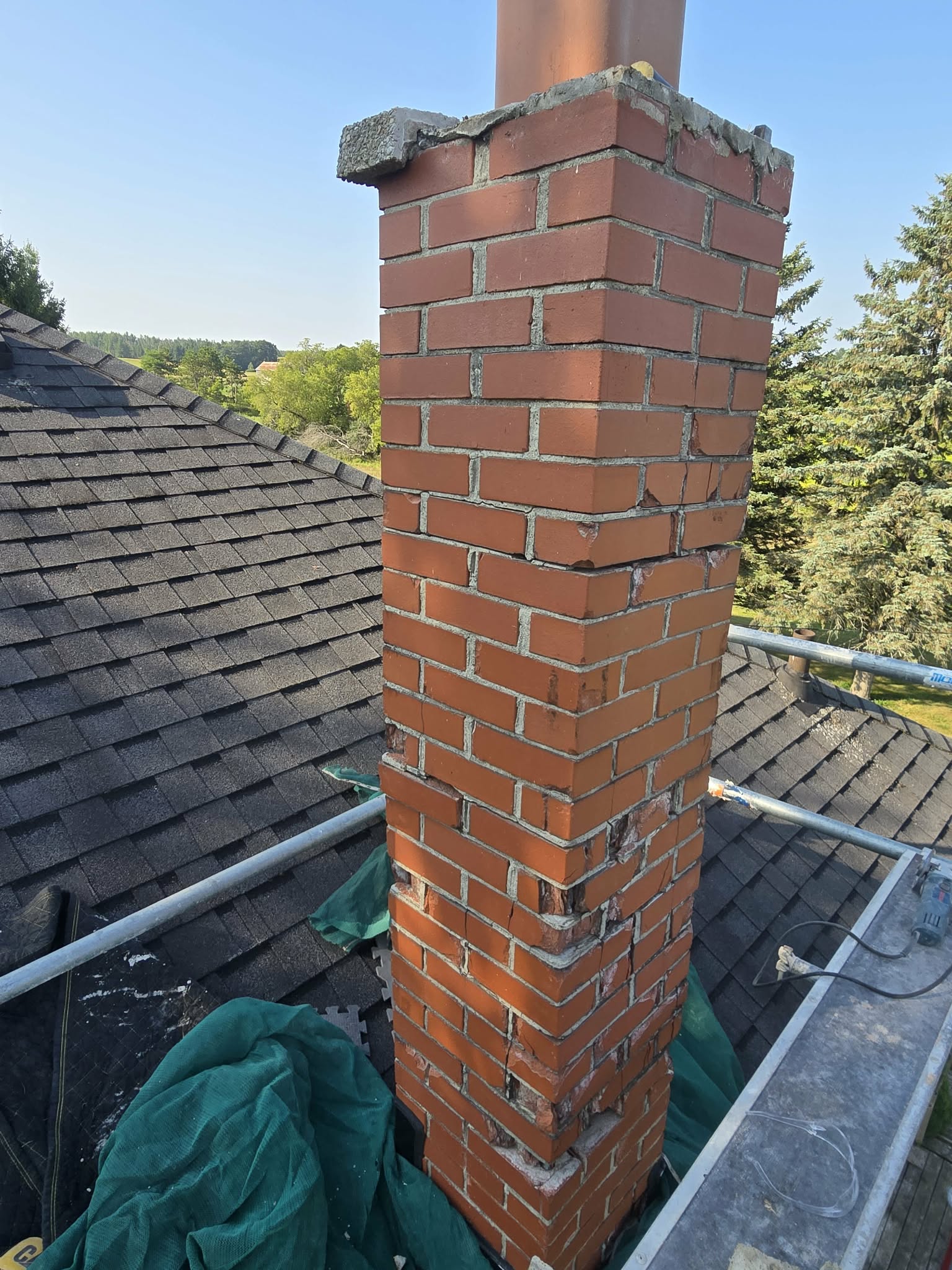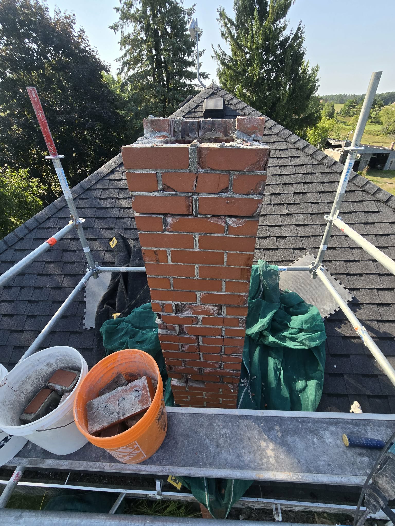 In Blackstock, we recently completed a chimney removal and capping project for a homeowner dealing with ongoing leaks. The chimney had deteriorated to the point where it needed to be rebuilt or taken down for safety as the family had noticed falling bricks on the lawn.